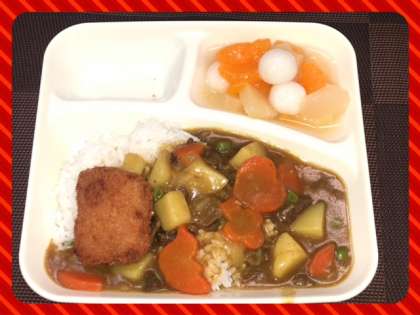 カツカレーライスには色々な形のラッキーにんじんがはいっていました。もちろん完食でした。
