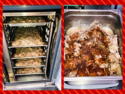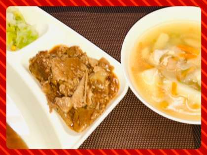 豚肉のデミグラスソースはワイン・塩・粗びきこしょう・オリーブ油で下味をつけ焼き上げた豚肉にりんごピューレ・デミグラスソース・ウスターソース・ケチャップを合わせ煮たソースをからめています。甘味のきいたソースで豚肉によく合い大好評でした。