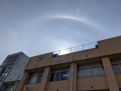 太陽の周りに虹のような光の輪が清江小学校の空にも現れました。ハロ・ひがさともいうそうです。