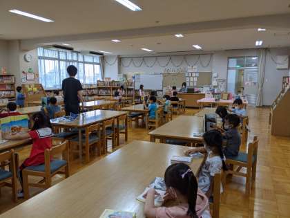 5月18日(火)、1年生の様子です。2組は図書室を利用していました。