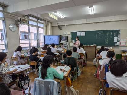 5月20日(木)、5年生の様子です。1組は家庭科科で「安全に実習しよう」の単元を学習していました。2組は国語科「図書館へ行こう」の単元を学習していました。