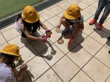 運動場に出て光をあててみました。みんな素敵な「ひかりのプレゼント」を作ることができました。