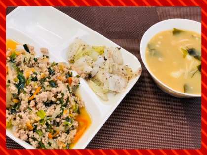 ● 豚ひき肉とにらのそぼろ丼