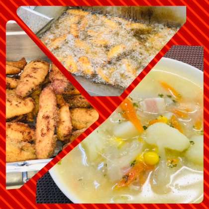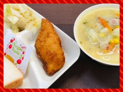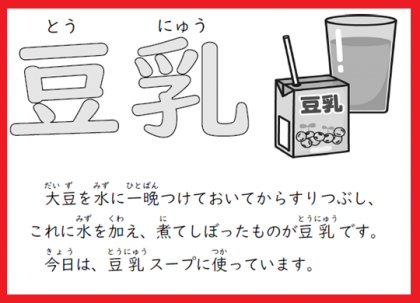 豆乳スープはベーコンのうまみにじゃがいも・コーン・たまねぎ・にんじん・パセリを使用した、豆乳のまろやかさを生かしたスープです。豆乳は無調整豆乳を使用しています。