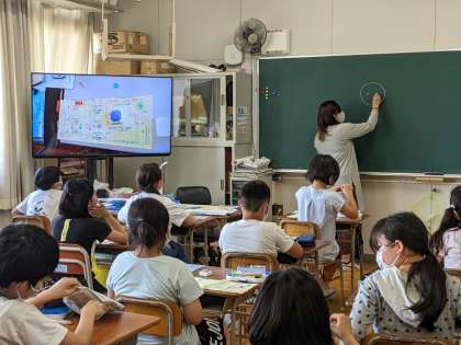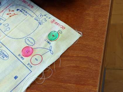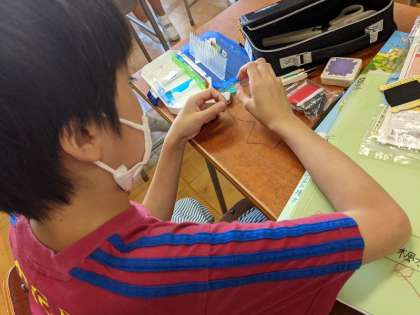 6月17日(木)、5年1組の家庭科の様子です。ボタンつけの練習をしていました。