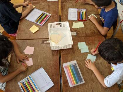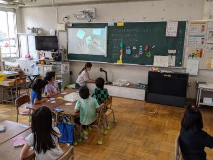 6月29日(火)、1年1組では七夕に向けて折り紙で飾り物を作っていました。