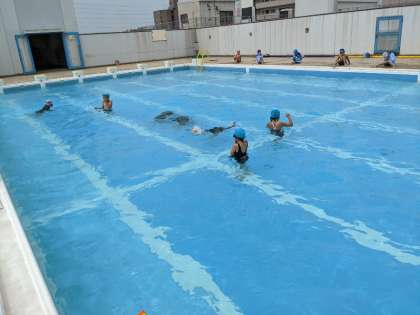 7月9日(金)、2年生の水泳学習の様子です。2回目ですが、段々と水慣れをしているようです。宝探しをし、顔もしっかりと水につけれています。