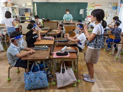 7月15日(木)、3年生の授業の様子です。1組は音楽科で感染症対策を講じてリコーダーを練習していました。2組は国語科「はりねずみと金貨」の単元を学習していました。