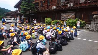 11時50分、河鹿荘へ到着しました。皆元気です。開舎式の様子です。