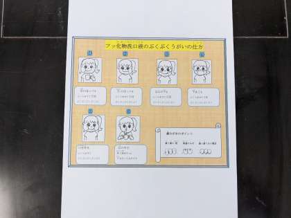 フッ化物洗口は、永久歯のむし歯予防を目的に一定の濃度のフッ化ナトリウムを含む溶液で、1分間ぶくぶくうがいをする方法です。