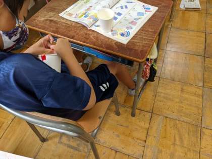 9月9日(木)、2年生の様子です。1組は図画工作科で「ぴょんコップ」を作成していました。2組は国語科で漢字ドリルを学習していました。とても丁寧な字で書けていますね。