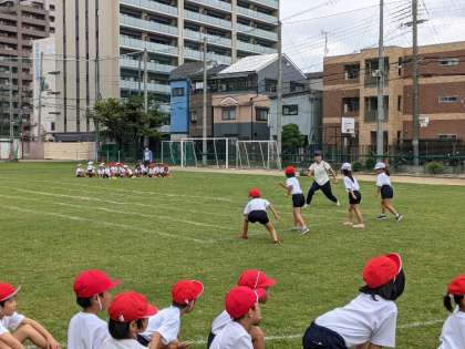 9月16日(木)、スポーツフェスティバルの練習が始まっています。1年生は「かけっこ」の練習をしていました。