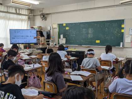 9月21日(火)、5年生は1・2組とも、算数科「分母のちがう分数」を学習していました。