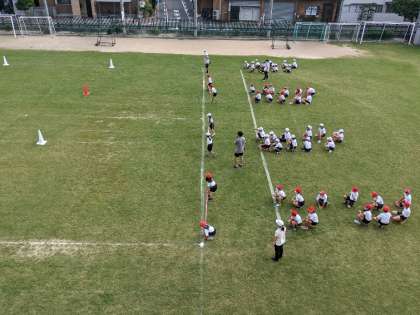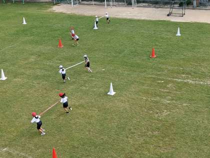 9月24日(金)、4年生のスポーツフェスティバルの練習です。台風の目ですね。
