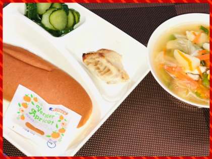 「かつおのマリネ焼き(ノンエッグドレッシング)」は、卵アレルギーのある児童生徒も食べることができるノンエッグドレッシングを使っています。塩、こしょう、ノンエッグドレッシングで下味をつけたかつおを焼き上げています。