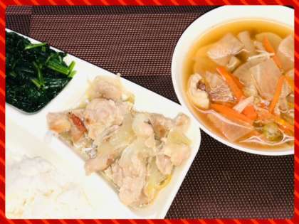 きょうの給食のソーキ汁には、豚ばら肉とだいこん、切りこんぶなどを使っています。