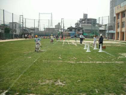 自転車の安全な乗り方を教えていただき、子どもたちは熱心に自転車の安全運転に取り組んでいました。