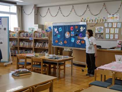 10月15日(金)、5時間目「きらきらタイム」の様子です。ハロウィンの掲示物を作成いたしました。