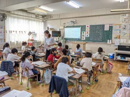 10月21日(木)、1年1組は算数科、2組は音楽科を学習していました。