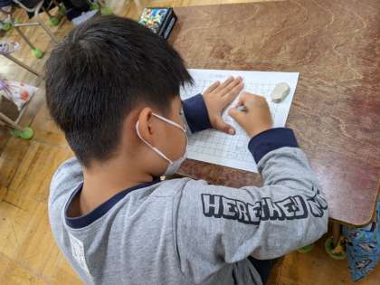 10月29日(金)、3年1組では2学期のアルバムということで、秋の遠足について作文を書いていました。