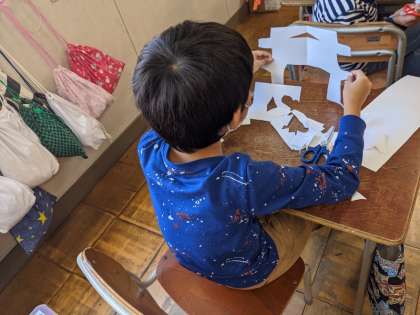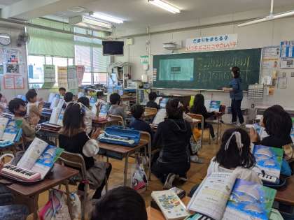11月4日(木)、2年1組は音楽、2組は図工を学習していました。