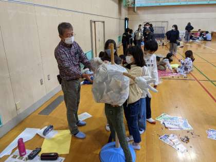 11月8日(月)、4年生は、地域の方や住吉大社の方に支援をいただき、かかしづくりを行いました。