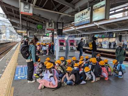 昼食後、反対側をまわりました。13時59分発の電車に乗り、学校に戻ります。