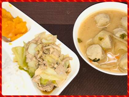 今回はいわしだんご、だいこん、ごぼう、にんじん、みつばなど使った汁物です。具沢山の汁は体が温まるため、寒い冬によく食べられます。
