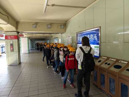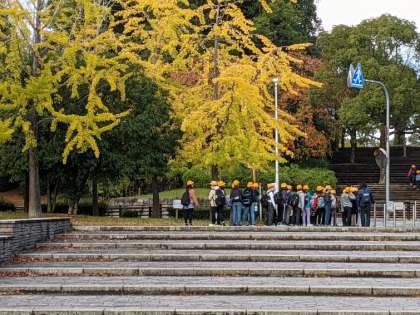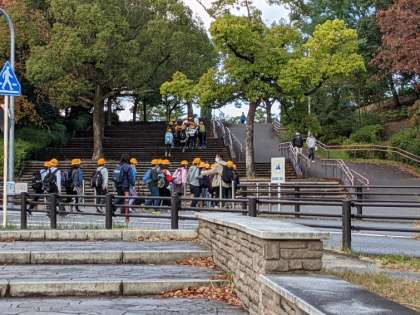 11月12日(金)、5年生は服部緑地公園へ遠足です。大阪メトロに乗り、緑地公園に着きました。