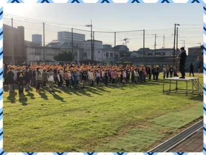 今年度2回目の運動場での朝会です。