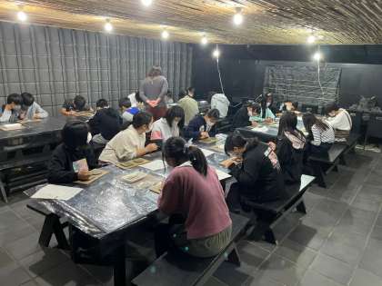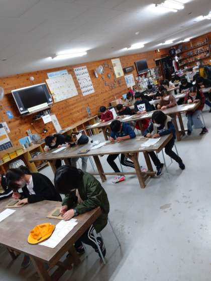 瓦粘土彫刻の体験をしています。