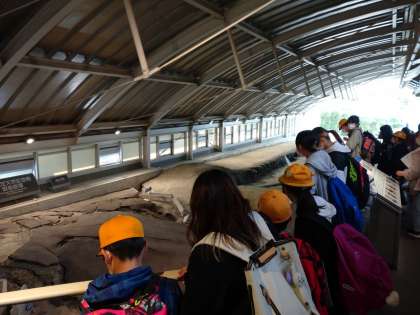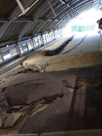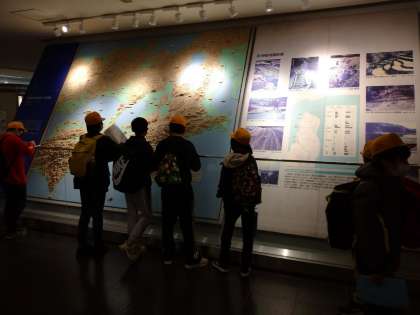 北淡震災記念館で地震の断層をみています。