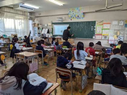 11月20日(土)、土曜授業を行いました。1限は全学年授業をしました。1組は国語科「パラリンピックがめざすもの」、2組は社会科「店のくふうと買い物客のねがい」を学習していました。
