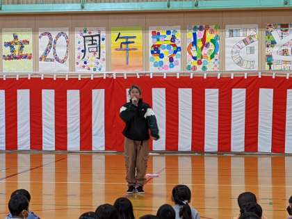 11月20日(土)、土曜授業を行いました。1限は全学年授業をし、3限は2・4・6年生が「創立20周年おめでとう集会」を行いました。