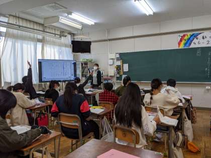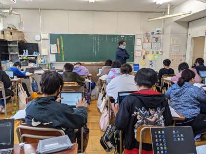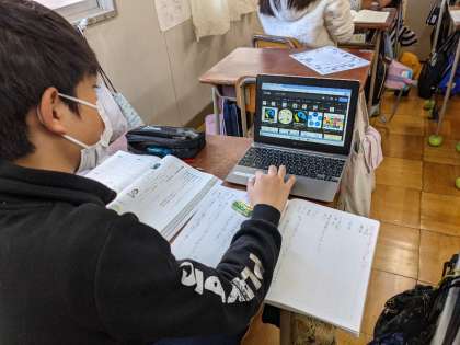 11月24日(水)、6年生は国語科「世界に目を向けて意見文を書こう」の学習をしていました。タブレットを活用し自分たちで資料をさがしていました。