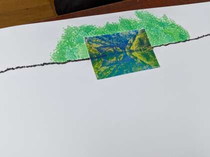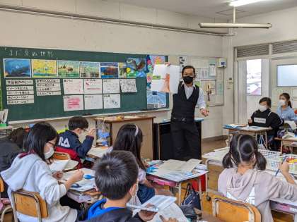 11月24日(水)、5年1組で図画工作科「まだ見ぬ世界」の研究授業がありました。様々な道具を使って写真からイメージを広げ、自分なりの世界を作品として作りました。