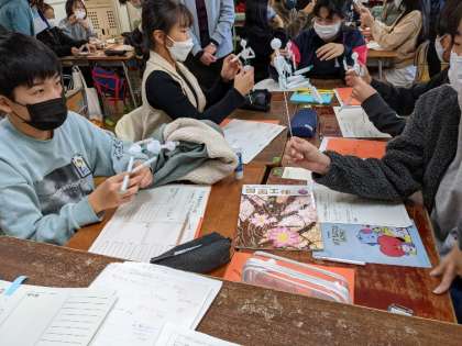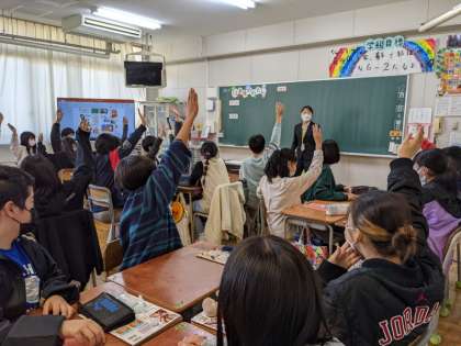 12月2日(木)、6年2組で図画工作科「未来のわたし」の単元で研究授業がありました。12年後の自分を創造して表現したい場面のアイデアスケッチの作成に取組みました。