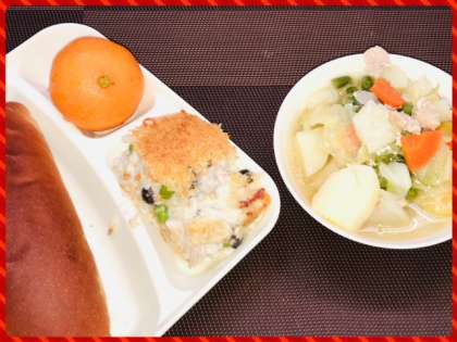 「きのこのドリア」はしめじ・エリンギ・マッシュルームを使用し、ベーコンで旨味を、クリームでコクをだしています。