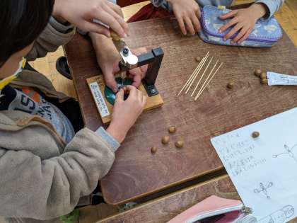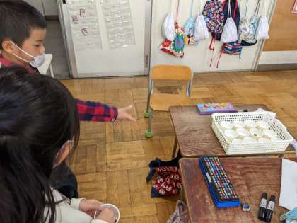 12月14日(火)、1年1組は生活科で住之江公園で拾ったどんぐりを活用し様々な道具を作りました。