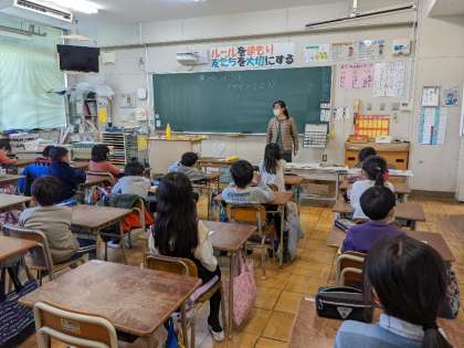 12月14日(火)、2年1組はストローを使って何かを作っていました。2組は年賀状のデザインを考えていました。