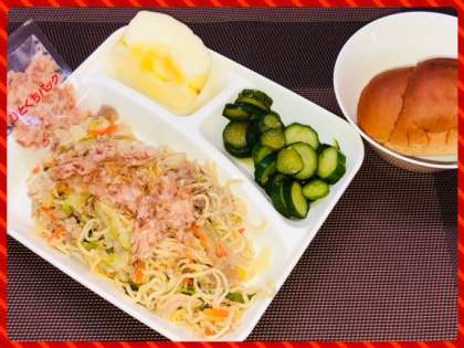 和風焼きそばには、1人1袋のかつおぶしがつきました。