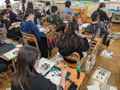 1月13日(木)、5年生の学習の様子です。書初めをしていました。