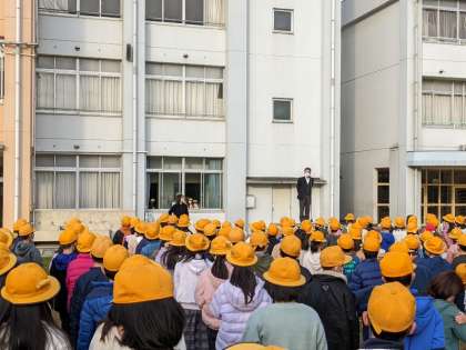 1月17日(月)、児童朝会を行いました。校長先生からは1995年1月17日に発生した「阪神・淡路大震災」のお話があり、その当時の揺れの恐ろしさを体験を通して話をされました。追悼の意を表します。
