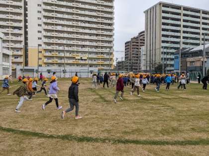 1月17日(月)、避難訓練(地震・津波)を行いました。運動場へ避難した後、3階以上の教室へ避難しました。