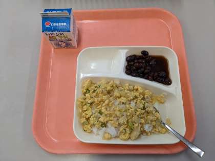 今日の献立は、 ・親子丼 ・すまし汁 ・黒豆の煮もの です。