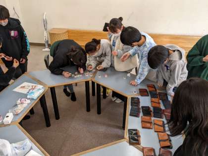 3月10日(木)、5・6時間にクラスごとではぐくみネット協賛のもと、消しゴムはんこつくりを行いました。自分が考えた下書きをもとに彫刻刀を使って彫り、作成しました。