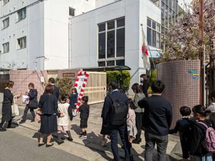 ご入学おめでとうございます。職員一同も児童の皆さんの入学を心待ちしておりました。これからの学校生活、「いのち1番」、「ニコニコ2番」、「サンキュー3番」で前向きに取り組んでいきましょう。