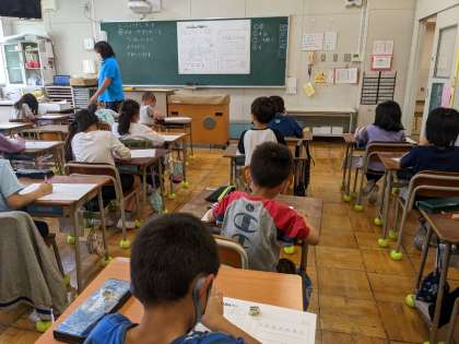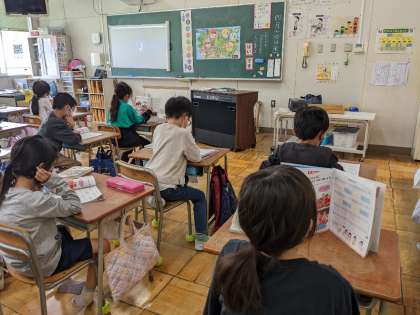 4月14日(木)、2年生の様子です。1組は音楽科、2組は図画工作科をしていました。