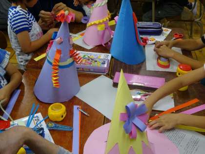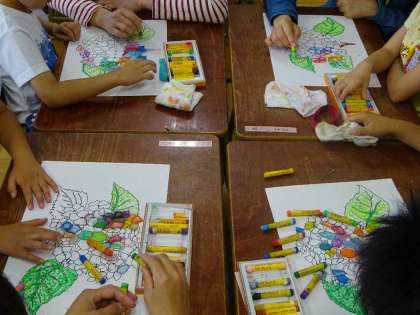 6月6日(土)1・2時間目に参観がありました。1年は算数と図工で、図工ではパスを使い「あじさい」を描きました。2年は国語と図工で、図工では「すてきなぼうし」を作りました。3年は国語と図工で、図工では絵の具を使い「私のおすすめドーナツ」を描きました。