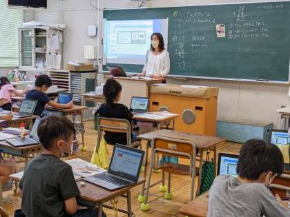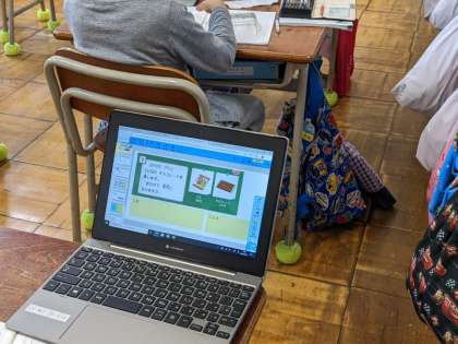 4月27日(水)、2年生「たし算のひっ算のしかたを考えよう」の単元を1人1台学習者端末を活用し、学習していました。